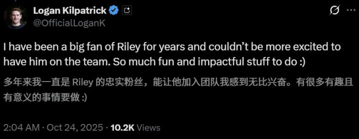 谷歌DeepMind产品负责人Logan Kilpatrick,更是连发好几条推文。