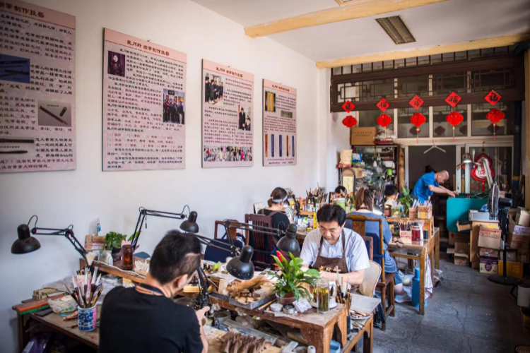 戴月轩始建于1916年,主营湖笔,所制毛笔具有“尖、齐、圆、健”之“四德”,达到“提而不散、铺下不软、笔锋尖锐、刚柔兼备”的品质特点。